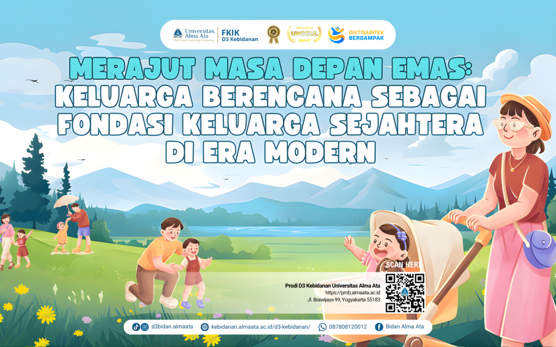 Sebagai bagian dari edukasi promotif Program Studi D3 Kebidanan, Fakultas Kedokteran dan Ilmu-Ilmu Kesehatan, Universitas Alma Ata, kami mendorong setiap keluarga untuk menjadikan perencanaan keluarga sebagai wujud cinta dan tanggung jawab yang berkelanjutan.